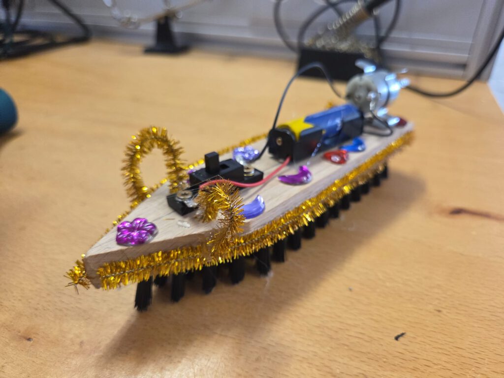 Beim Bau einer motorisierten Putzmaus konnten sie ihre Kenntnisse rund um das Thema Strom vertiefen und mit Tatkraft ihre handwerklichen Grundfähigkeiten wie Schrauben, Löten und Bohren unter Beweis stellen. Anschließend durften die Putzmäuse noch nach Belieben individuell gestaltet und verziert werden. 🐭🔧